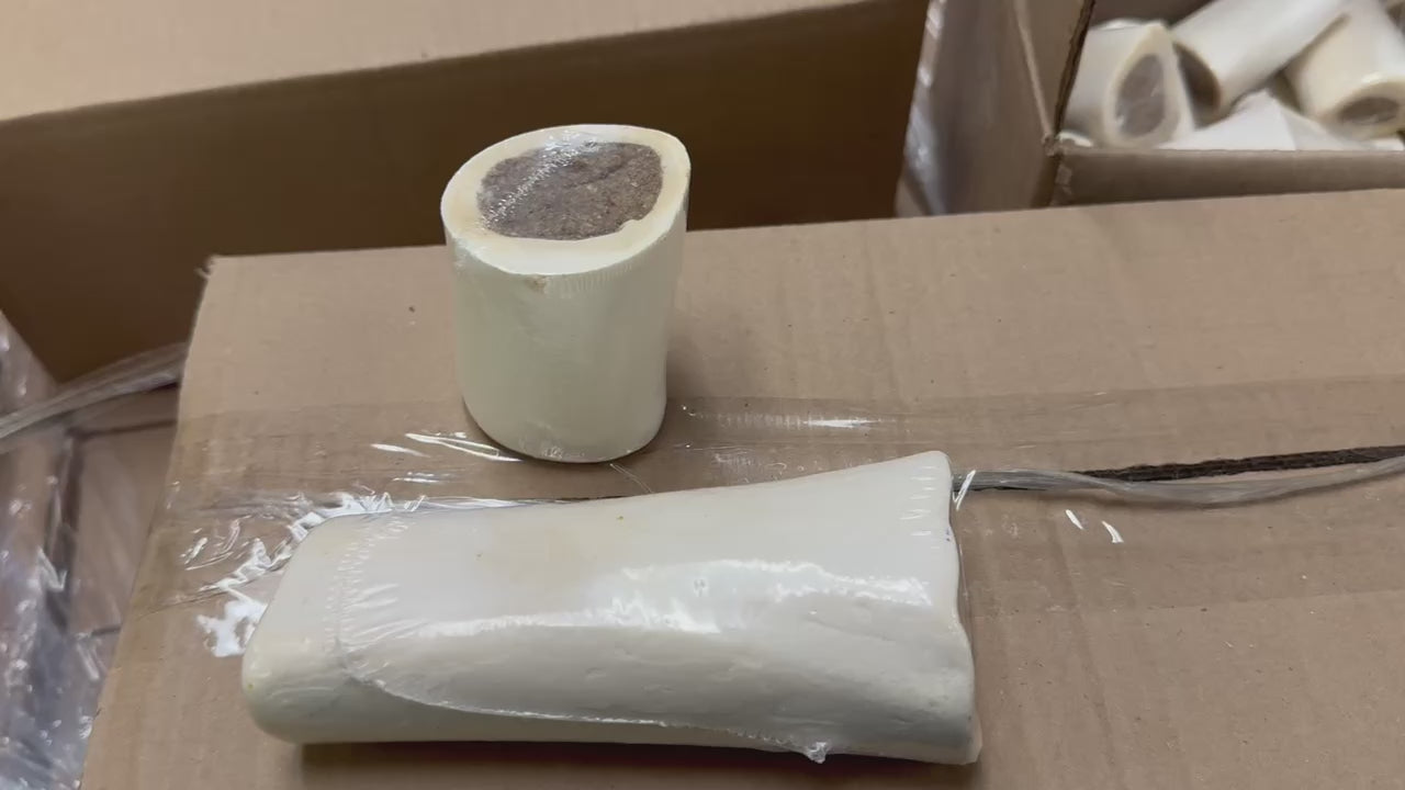 • Made from fully digestible materials, these stuffed shin bones are a safer alternative to rawhide chews, reducing the risk of intestinal blockages.